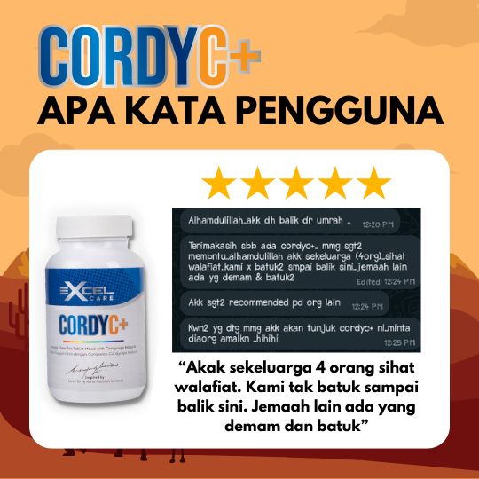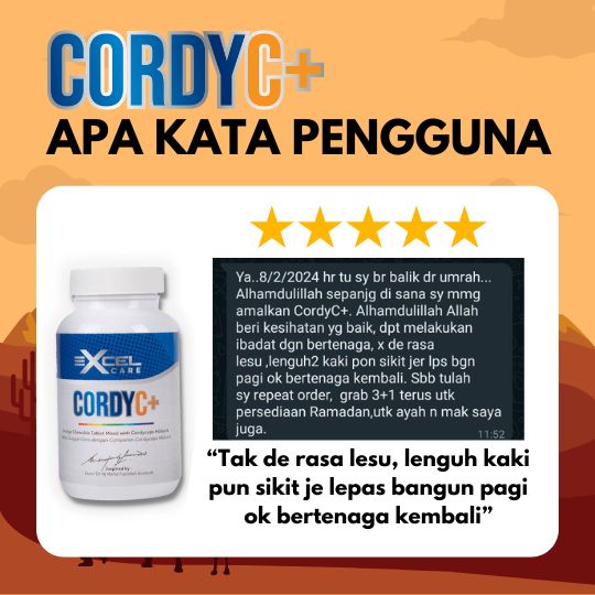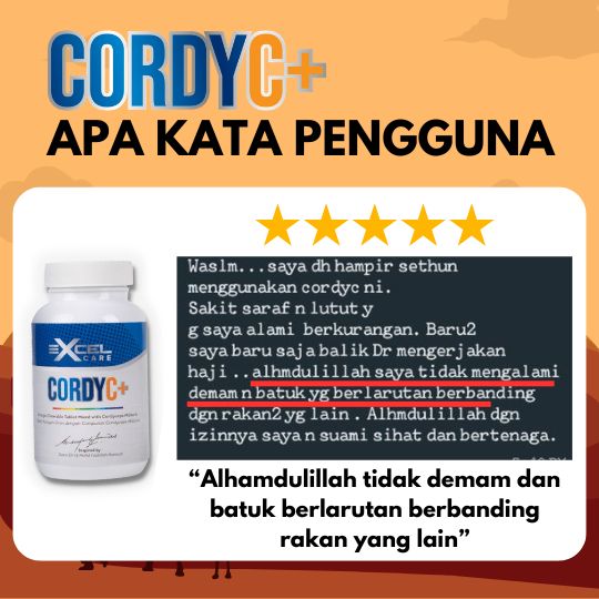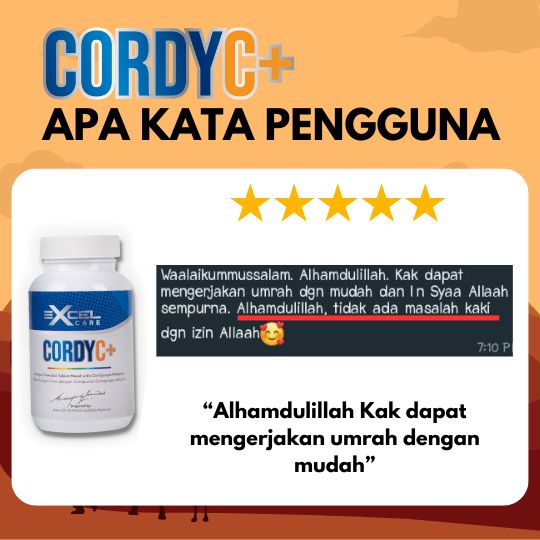 Semoga ikhtiar dengan cordyC+ ni, kita sihat dan kuat semasa ibadat dan lepas balik ke malaysia