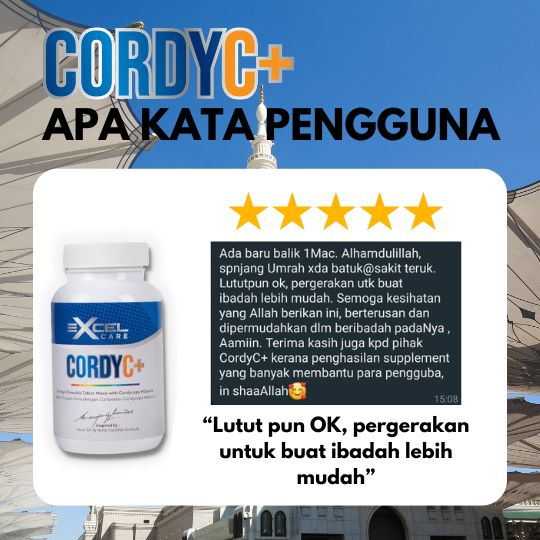 Semoga ikhtiar dengan cordyC+ ni, kita sihat dan kuat semasa ibadat dan lepas balik ke malaysia